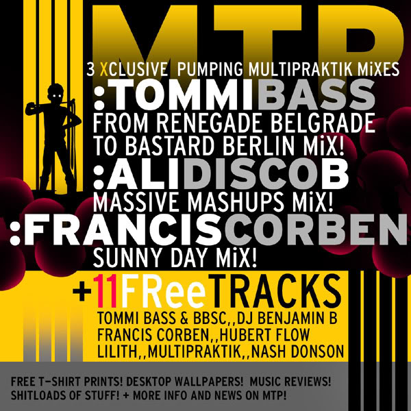 This package contains 3 mixes, 11 free download tracks, tons of great T-Shirt prints and wallpapers and some more info on MTP Rec.