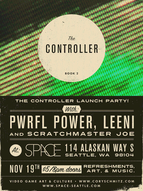SPACE invites you to the launch party for legendary designer Cory Schmitz’s latest video game art and culture magazine, THE CONTROLLER. More info on THE CONTROLLER at http://coryschmitz.com/