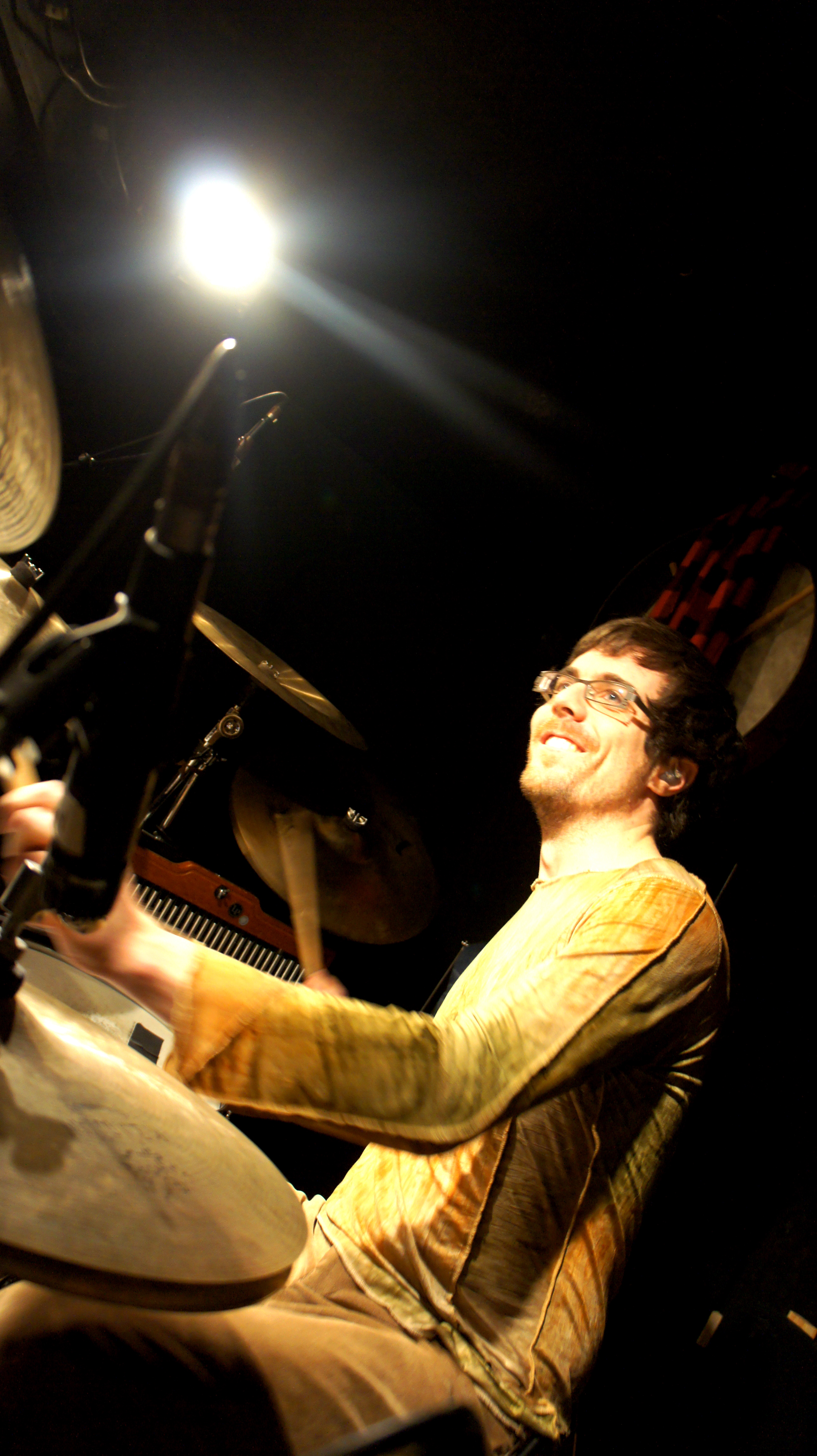 J As the drummer my role is to flawlessly follow the 200 audio/visual music cues. I am constantly watching the show from the booth. Similar to a play, it’s a little different every time.