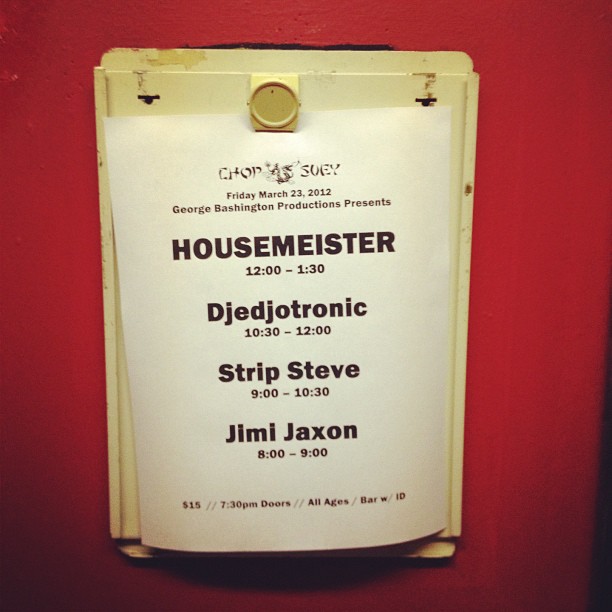 I was humbled to open the Boysnoize Records showcase at Chop Suey in Seattle recently, with label mates Housemeister, Strip Steve and Djedjotronic (thank you George Bashington Productions for putting this on). To have the BNR label represented (finally!) in my area was a treat and breath of fresh air. Last year at EDC in Las Vegas, I remember seeing a rad set by Skrillex, followed by an all out sprint to the stage next door. Boys Noize had the sunrise set, from 4:30-6am, and running alongside the stage I witnessed him throw down his mammoth track, “1010”. This acid banger sounds like it could level a building, one of the most monstrous productions Alex has created thus far, I’d say. His set was by far my favorite at the festival, very few people can confidently direct an audience so early in the morning. He had us all screaming for more at 6am when his set came to an end. Alex, if you’re reading this, thank you for making that BNR tote bag, got it at EDC and I’m so proud to wear it around.