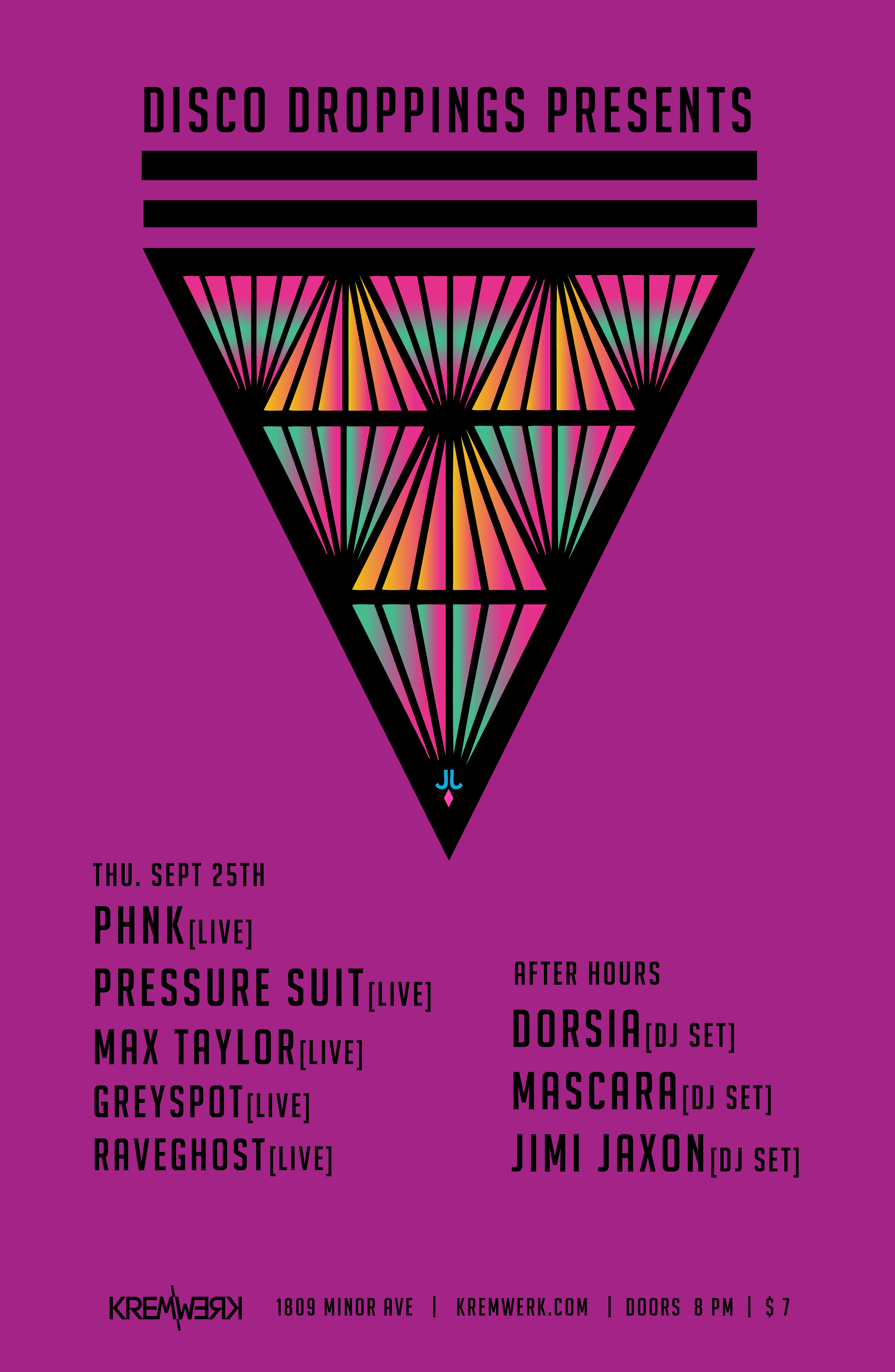 It’s Monday, and the dust slowly settles in Seattle. Decibel Festival comes to a close, and there was a lot to experience over the past five days. I felt the full spectrum of emotion, but for me things ended a bit too soon. After bank issues on Saturday night, and late late parties at Kremwerk, Rebar and Monkey Loft, I took a suppppppppper long walk back to my car. Finally crawled to my vehicle, headed home and hit the bed. Unfortunately when I woke up, I noticed that it was Monday morning, and I had missed all the Sunday shows. (゜-゜) Oops. Luckily, Nark Magazine has a show ready to go tonight (FB Event), and this headliner is more than equipped to pick up the pieces and keep the vibes movin’.